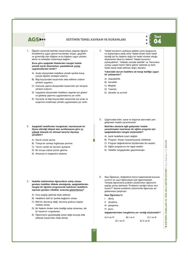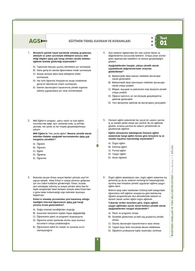 AGS’de yer alan tüm konularla ÖSYM formatına ve MEB-AGS resmi açıklamasına uygun testler.