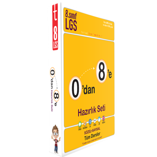 Elindeki bu kitaplar 8. sınıfta ve Liselere Geçiş Sınavı’nda (LGS) karşına çıkacak tüm sözel ve sayısal konuları sıfırdan başlayarak sana anlatmayı amaçlıyor. 0’dan 8’e Konu Anlatımlı Soru Bankası’nın sol sayfalarında yenilenen 8. sınıf müfredatına ve yeni sınav sistemine uygun konu özetleri seni bekliyor. Bu sayfalarda öğrenmen gerekenleri senin için detaylı bir şekilde özetledik. Kolayca öğren diye belli yöntemler gösterdik. Bilgeçler ile bilmen gerekenleri anlattık. Çözgeç ile soru çözmeni sağladık.